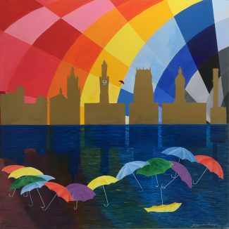 The original painting is in acrylic medium on a 1m square canvas.
